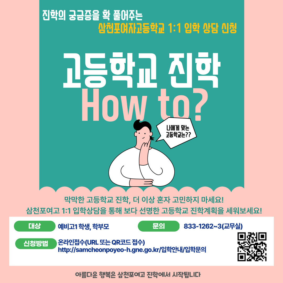 예비고1 학생, 학부모를 위한 1:1 입학상담 안내